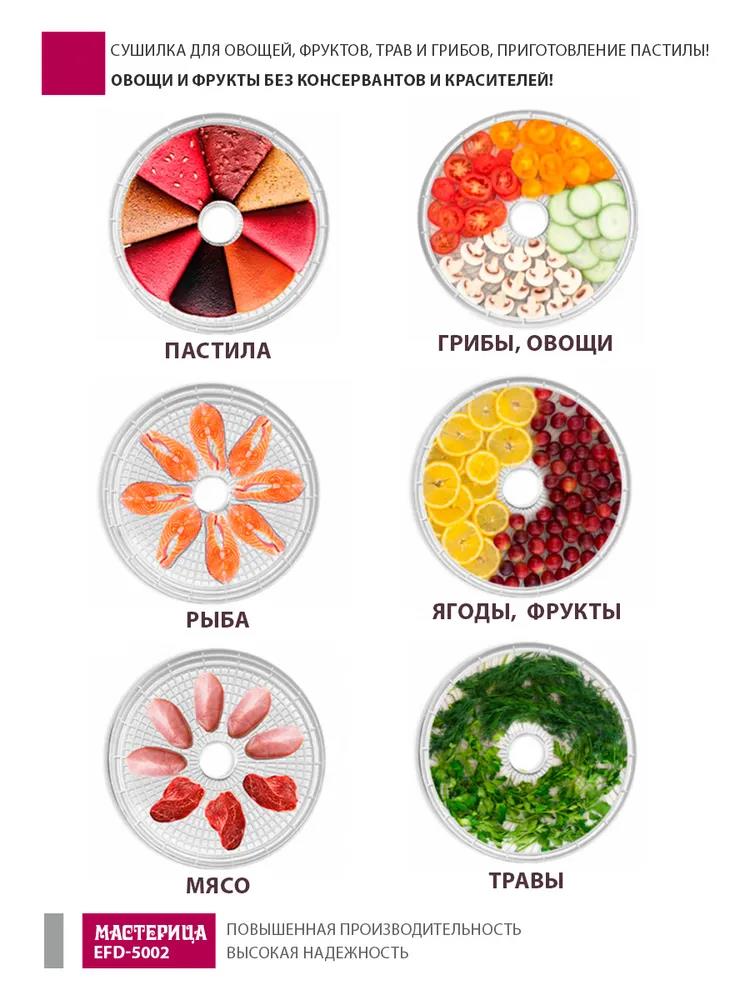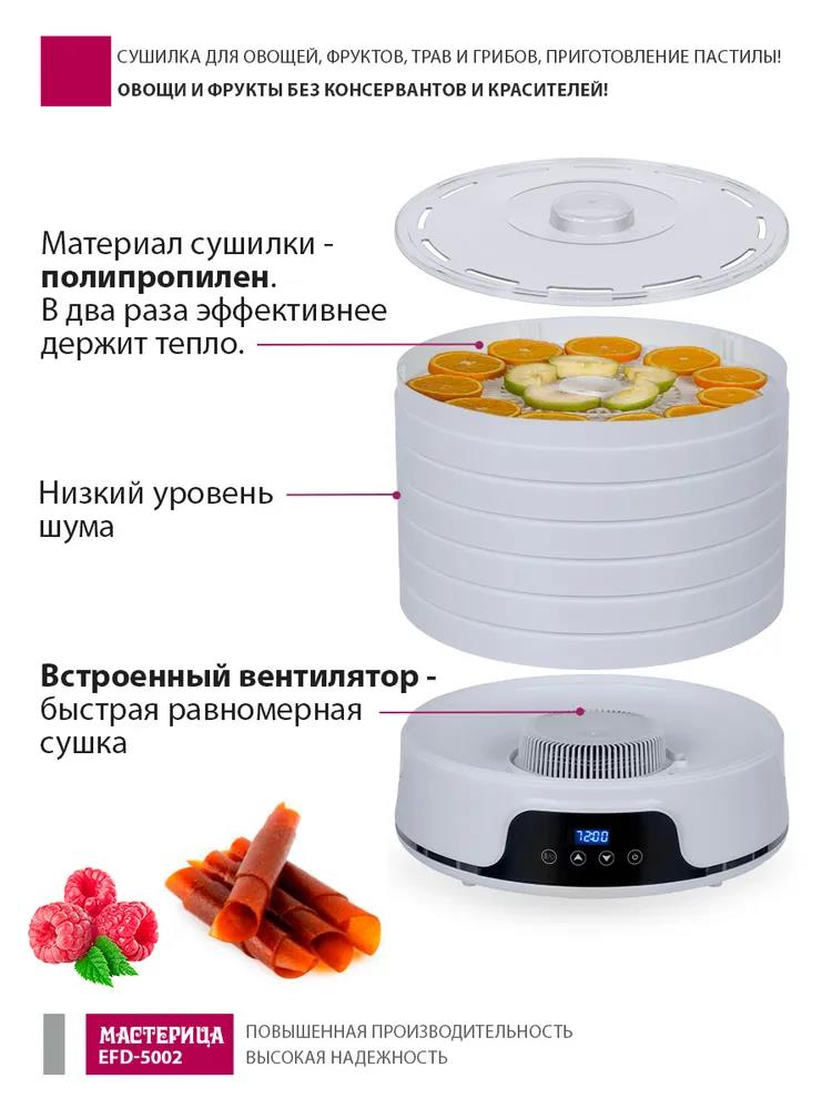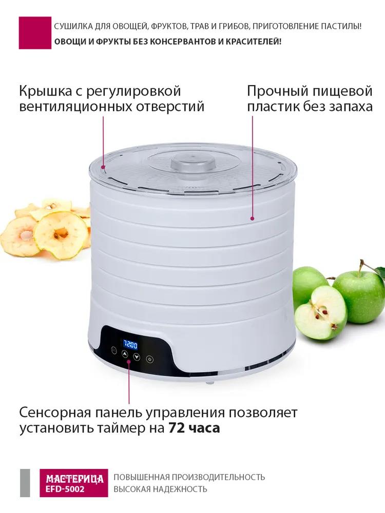 Сушилка для овощей Мастерица EFD-5002, 6 бел. поддонов + 3 поддона д/пастилы 500Вт, увелич. D поддона 36 см (поддонов 6 шт, 500 Вт , белый) - Интернет-магазин Электроника: бытовая техника, электроника, товары для дома и др.