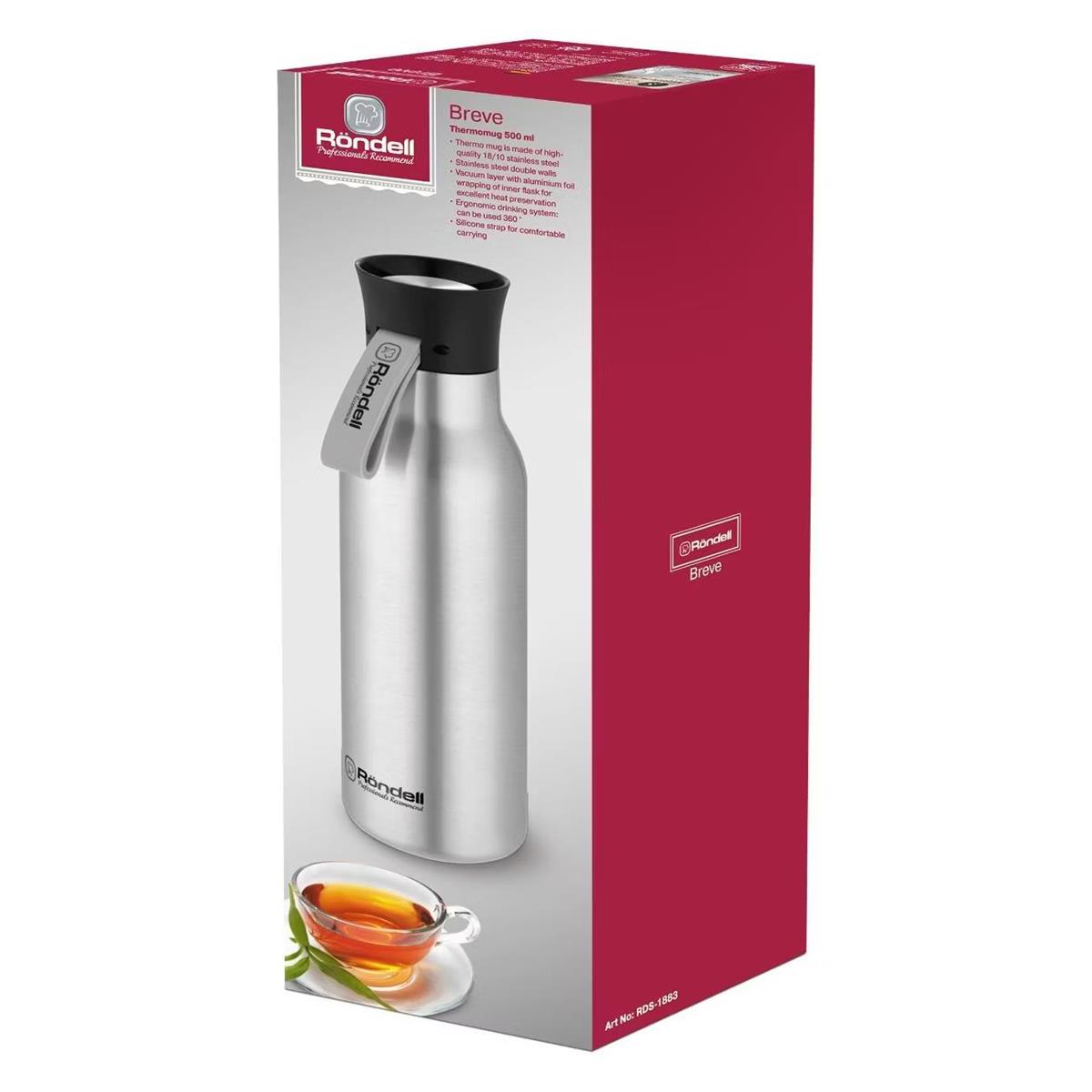 Термокружка Rondell Breve RDS-1883 для напитков 0.5л. стальной матовый карт. коробка (0.5 л ) - Интернет-магазин Электроника: бытовая техника, электроника, товары для дома и др.