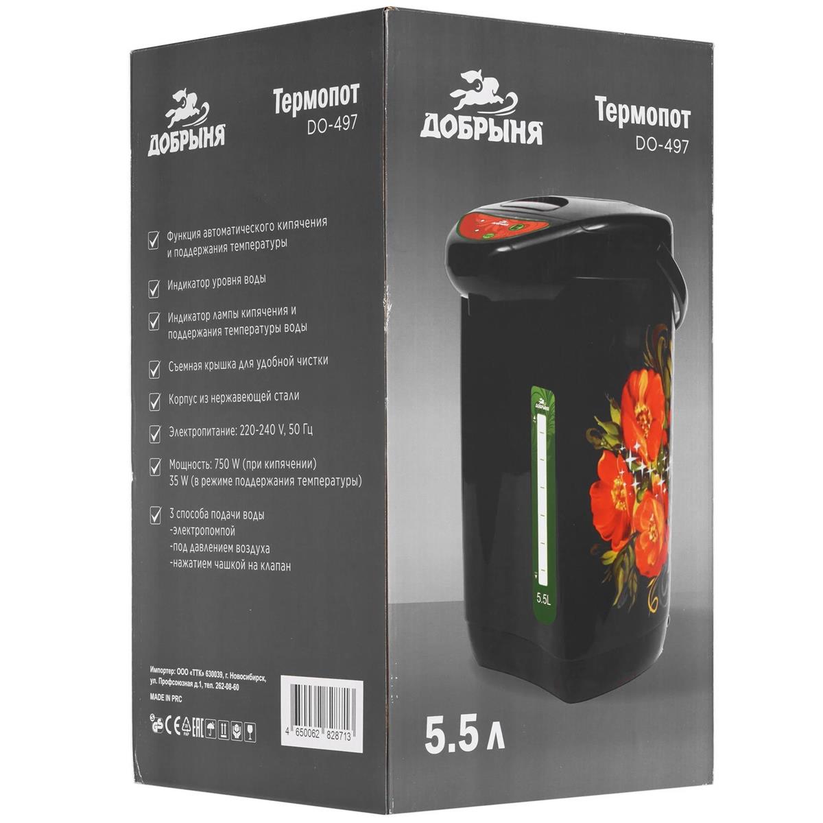 Термопот Добрыня DO-497 МАКИ (5,5 л /750 Вт /черный) - Интернет-магазин Электроника: бытовая техника, электроника, товары для дома и др.