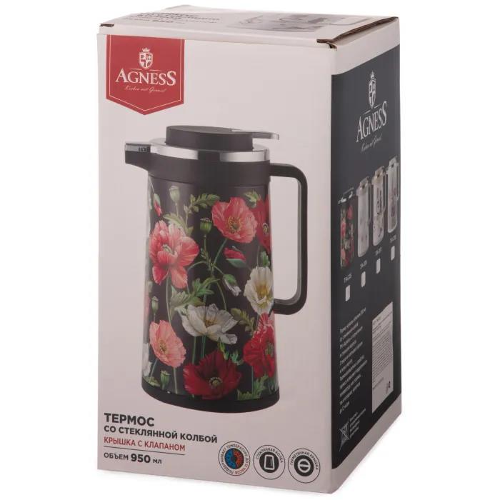 Термос AGNESS 734-206 серия DANDELION со стекл.колбой 0,95 л