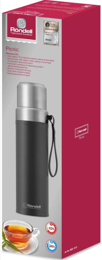 Термос Rondell Picnic RDS-1819 для напитков 0.8л. серый карт. коробка 0,8 л - Интернет-магазин Электроника: бытовая техника, электроника, товары для дома и др.