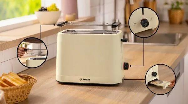 Тостер Bosch TAT3M127 (950 Вт  бежевый) - Интернет-магазин Электроника: бытовая техника, электроника, товары для дома и др.