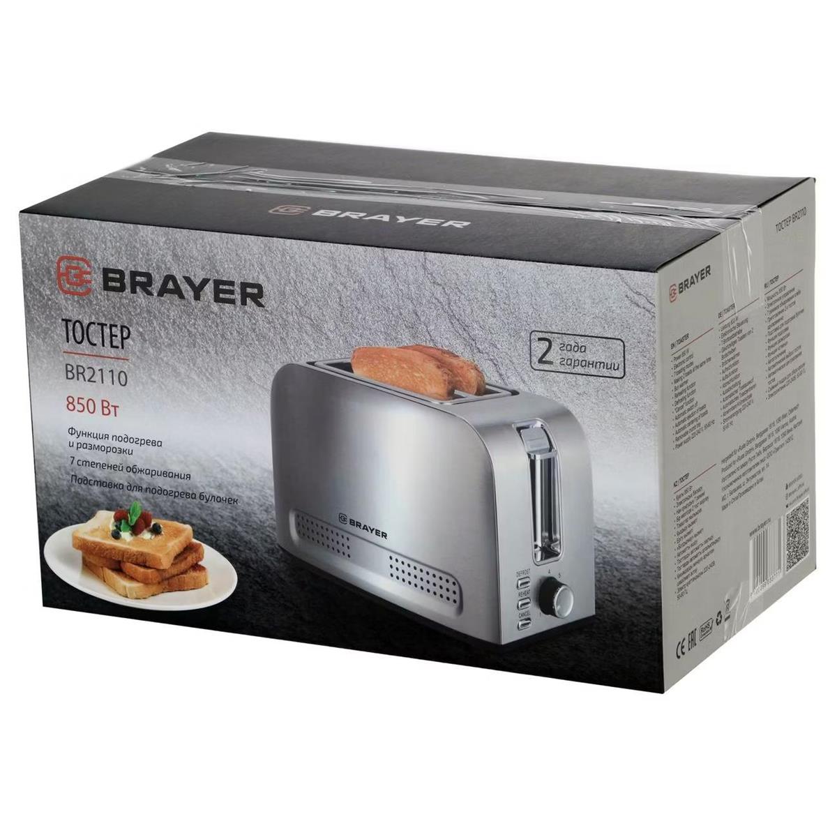 Тостер Brayer BR2110 (850 Вт серебристый, стальной) - Интернет-магазин Электроника: бытовая техника, электроника, товары для дома и др.