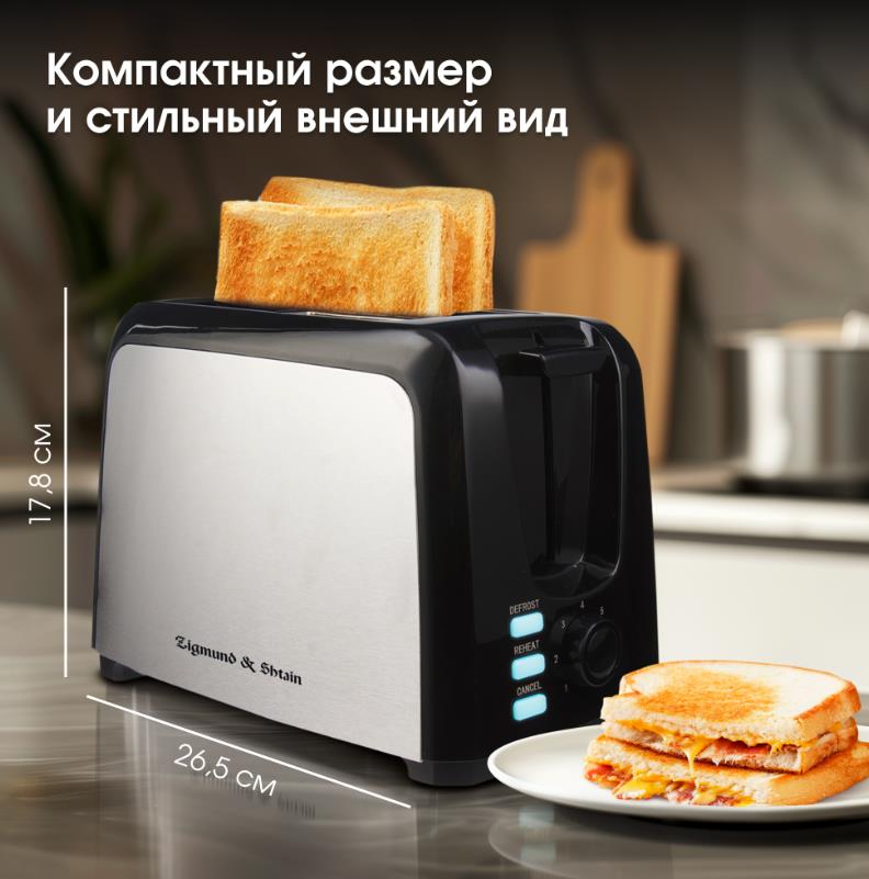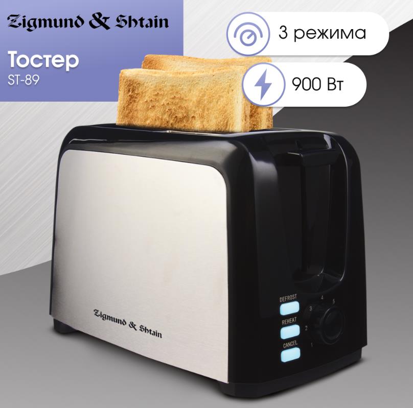 Тостер Zigmund & Shtain Kuchen-Meister ST-89 (900 Вт черный, стальной) - Интернет-магазин Электроника: бытовая техника, электроника, товары для дома и др.
