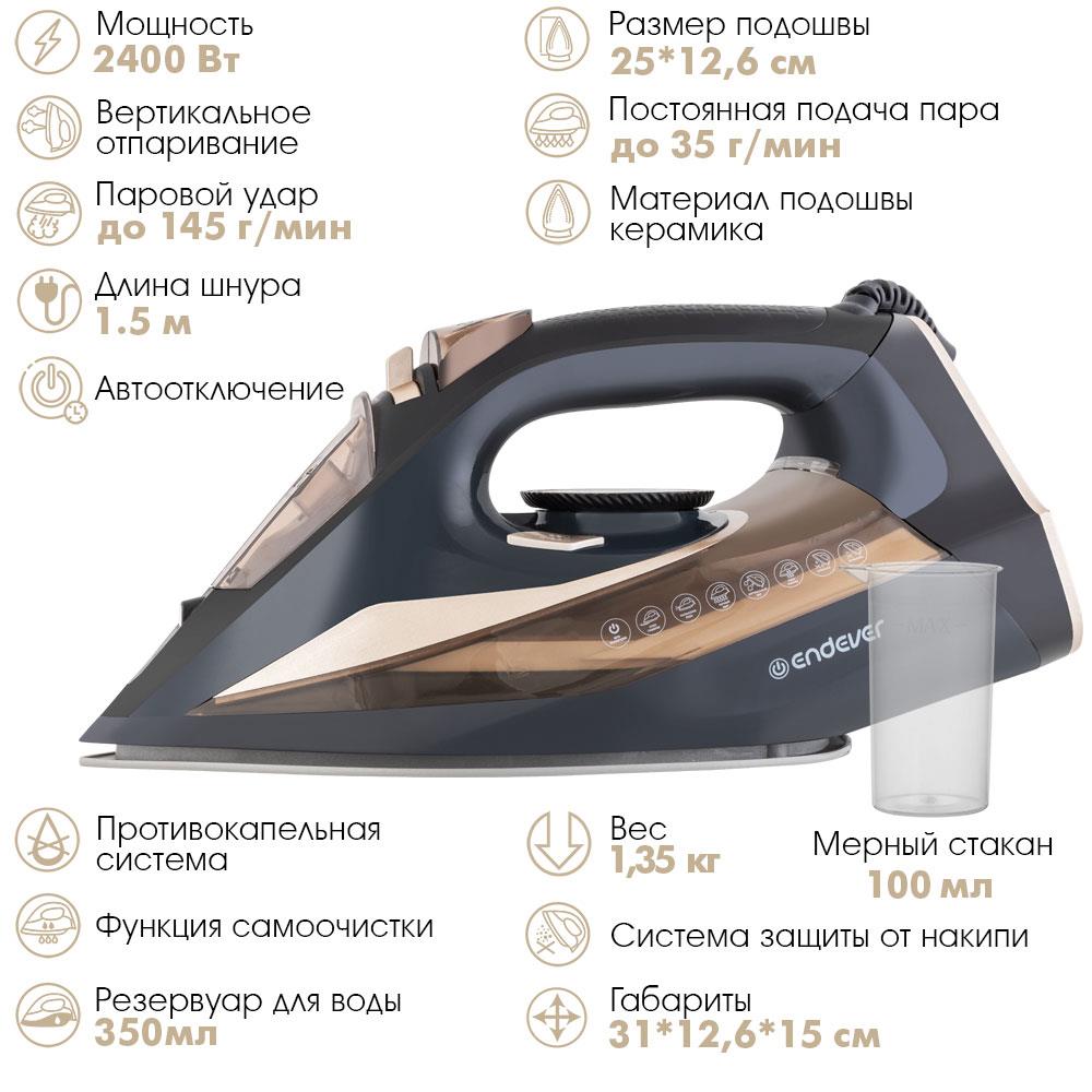 Утюг Endever Delta-233 (2400 Вт/золотистый, черный) - Интернет-магазин Электроника: бытовая техника, электроника, товары для дома и др.