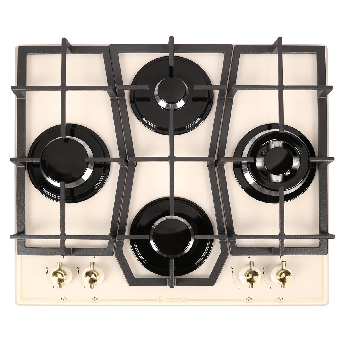 Gefest ПВГ 2231-10 В85 — это независимая встраиваемая газовая варочная панель шириной 60 см, выполненная в кремовом цвете в стиле «ретро». Основание модели изготовлено из закаленного стекла, а решетки — из прочного чугуна.