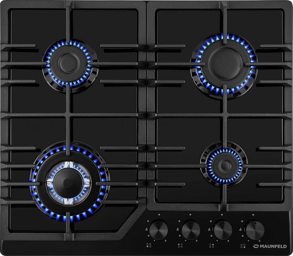 Maunfeld EGHE.64.43CB/G — это газовая варочная панель на четыре конфорки шириной 60 см. Управление механическое, осуществляется при помощи цельнометаллических поворотных ручек, выполненных в цвете «чёрный глянец». Материал поверхности — эмалированный металл, решётки чугунные. Модель может работать на разных типах газа. Функция газ-контроля обеспечивает безопасную эксплуатацию.