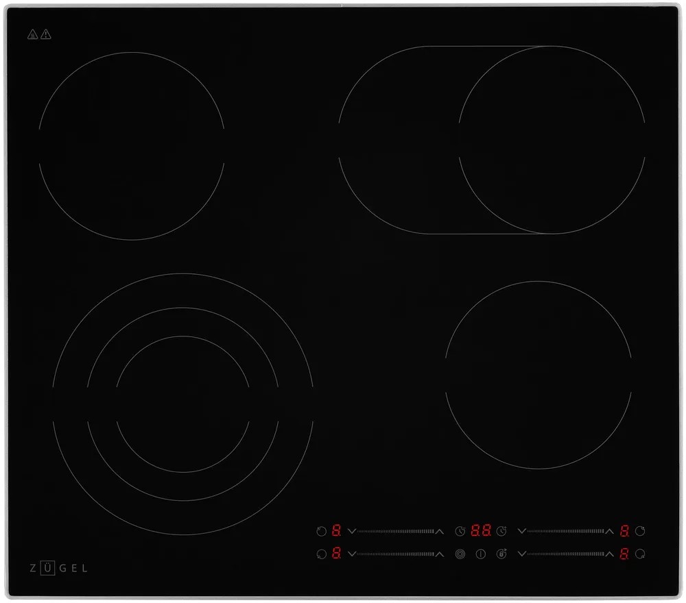 Электрическая варочная поверхность ZUGEL ZEH603FB — это независимая стеклокерамическая панель с 4 конфорками типа Hi-Light. Модель отличается наличием металлической рамки по периметру и удобным управлением с помощью индивидуальных сенсорных слайдеров для каждой зоны нагрева.