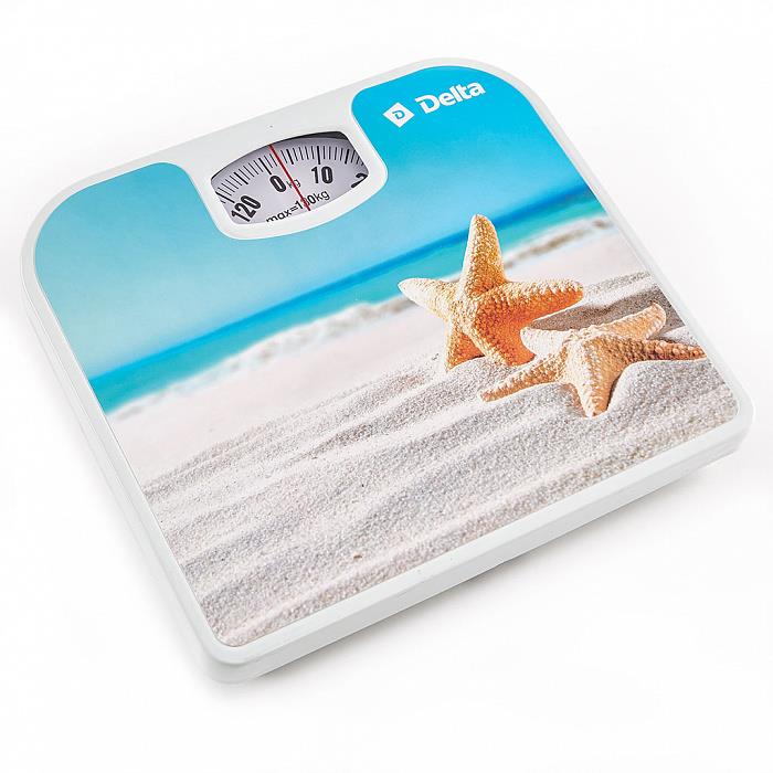 Весы Delta D-9406 позволяют измерять массу тела и станут надежным помощником для тех, кто ведет здоровый образ жизни. Они оборудованы прочной платформой с разноцветным красочным рисунком в стиле «морской бриз», которая способна выдерживать нагрузку до 130 кг. Для отображения сведений о массе тела установлен механический циферблат с шагом в 1 кг. Благодаря компактным размерам и небольшой высоте вы сможете с удобством хранить весы под мебелью или в шкафу. Нескользящие ножки на основании платформы гарантируют надежную фиксацию весов Delta D-9406 на различных покрытиях.