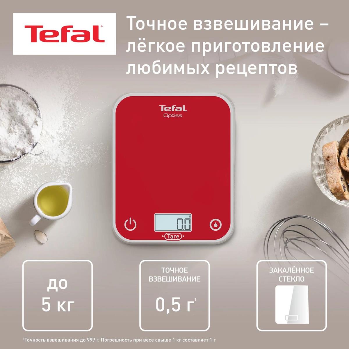 Весы кухонные Tefal Optiss BC50U3V0 (красный) - Интернет-магазин Электроника: бытовая техника, электроника, товары для дома и др.